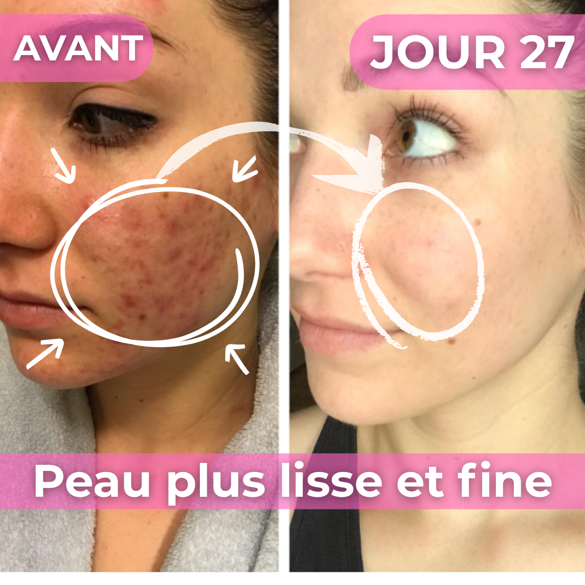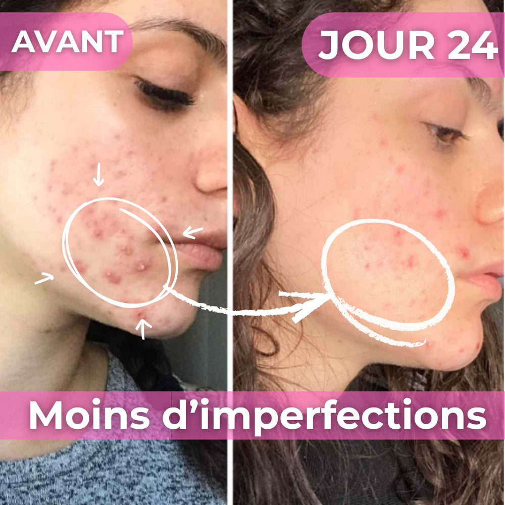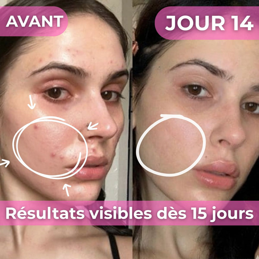 "Mes boutons me rendaient folle, j'étais à deux doigts d'abandonner. Mais ce truc c'est incroyable. Ma peau est devenue hyper clean et le glow est fou en quelques jours🥰 10/10"